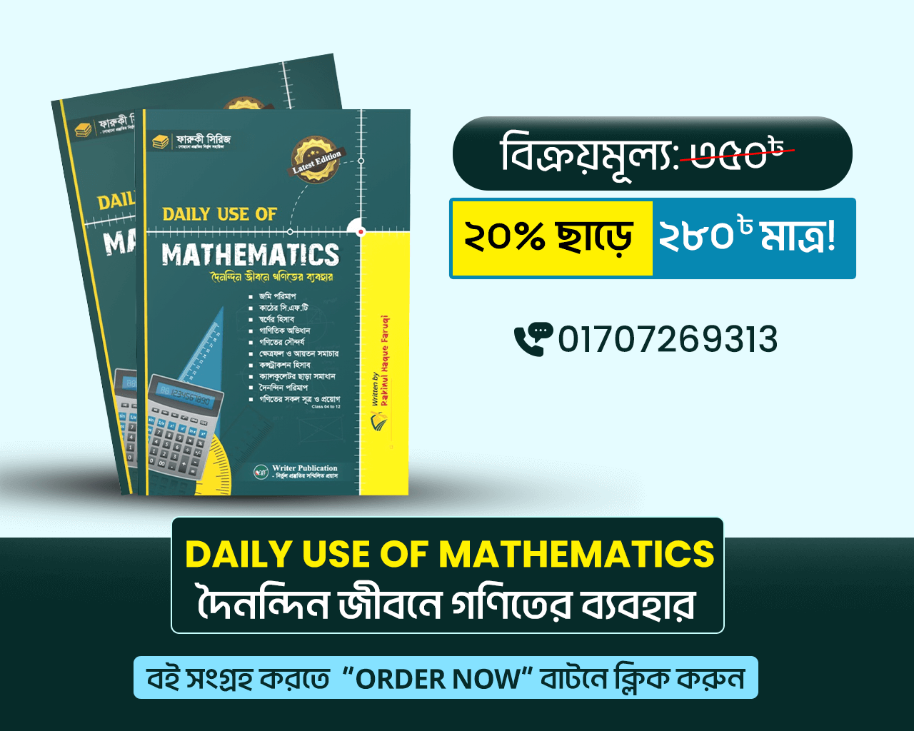 নিঃসন্দেহে “Daily Use of Math” বইটি গণিতের প্রতি আপনার নতুন দৃষ্টিভঙ্গি তৈরি করবে। পাশাপাশি বাস্তব জীবনের গাণিতিক সমস্যাগুলোকে সহজভাবে সমাধান ও প্রয়োগে আপনাকে দক্ষ করে তুলবে।